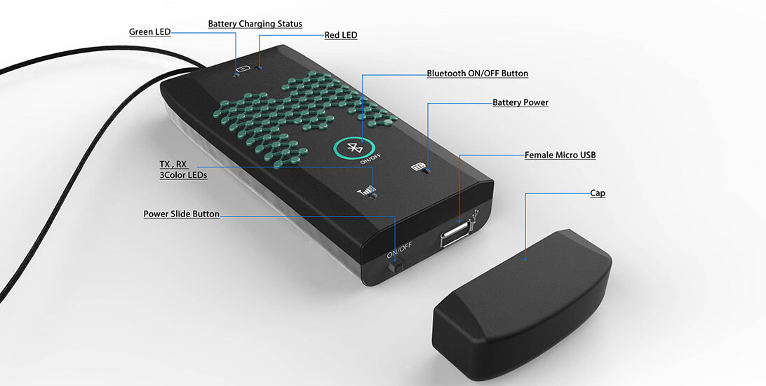 Bluetooth will be the choice of connection to the smart device as it offers best performance and battery usage. This solution offers the following functionality: